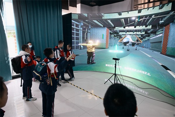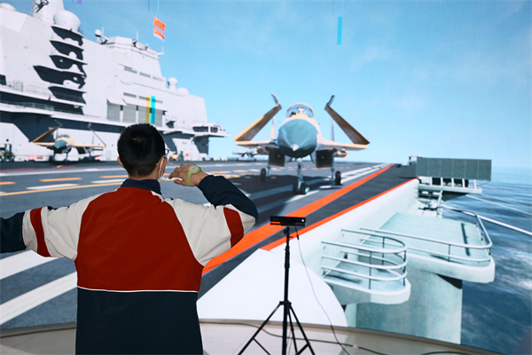 战机着舰辽宁舰:见证海空力量 通过高精度模拟设备,同学们感受了舰载机起降的惊险与刺激,深入了解中国海军的发展历程,增强国防意识与民族自信心。
