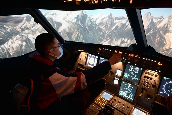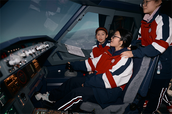 飞行模拟机:圆蓝天飞行之梦 飞行模拟机课程中,在专业教练的指导下,同学们学习飞行操作技巧,模拟起飞、巡航、降落等全流程,感受飞行的乐趣与挑战,培养严谨的逻辑思维与应急反应能力。