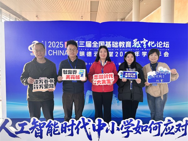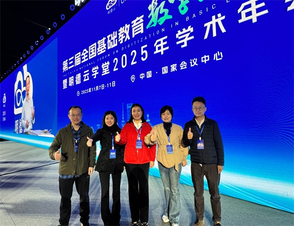 第四站:北京·数字引领,拥抱基础教育新未来 2025年11月7日-11日,在首都北京,论坛聚焦数字化转型的战略路径、课堂实践与未来趋势,学校副校长冯燕玲和薛雅文、戢琳、钟勇、李逢春4位老师通过聆听专家的报告和实地参观学校,了解教育数字化的发展动向,为学校深入推进信息技术与教育教学的融合创新、打造面向未来的智慧校园积累了丰沛能量。