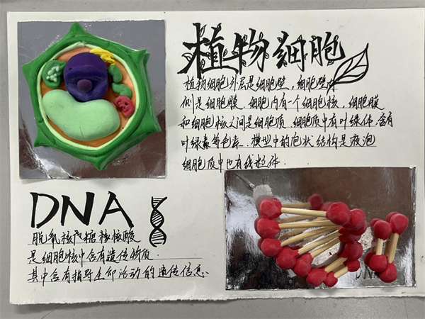 此外,参赛作品中还包括结构完整的昆虫标本、精细的人体生理模型(如肾单位、消化系统等)、微生物模型、花的模型以及DNA双螺旋结构模型等,类型丰富、制作精良,充分展现了同学们严谨的科学态度与良好的美学素养。