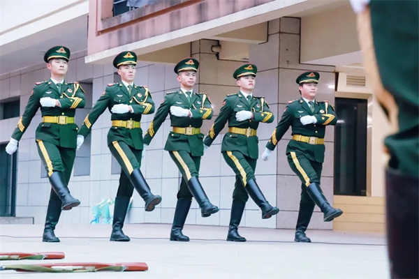 指导传承,精神接力 现场,星兵连国旗护卫队还对学校国旗队队员进行了手把手的指导。从军姿定型到展旗节奏,教官们悉心规范每一个升旗动作,面对面传授护旗心得。国旗队员们认真观摩学习,在动作的精准传承中,也完成了一次庄严的精神接力。