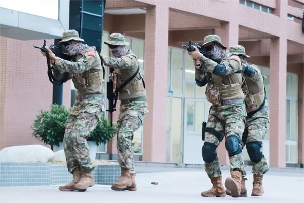 实战演示,感受国防力量 战士们不仅带来了刚劲有力的战术摔擒实战演示,展现了特战队员的风采,还现场讲解了火箭筒武器装备知识,并通过模拟演示,让同学们直观感受到了国防科技的实力与进步。