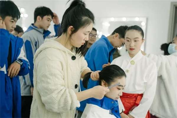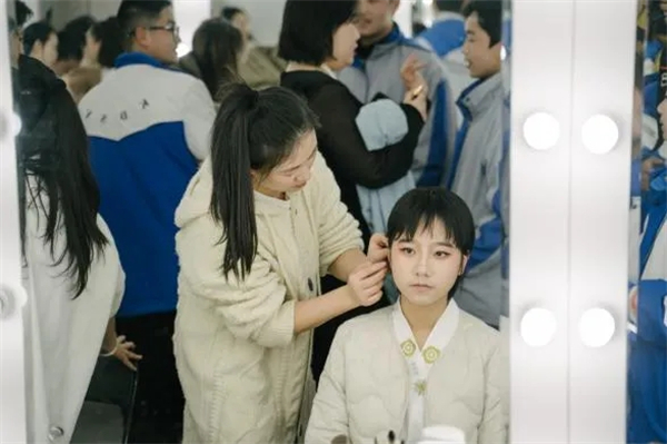 后台光影:以爱为妆 以心为声 演出开始前,音乐厅后台便浸润在一种温暖而有序的忙碌中。少年们彼此整理衣领,妆造师轻描舞台妆容;镜前的眼眸里,期待悄然漫过了起初的紧张。打开简单的餐盒,众人围坐分享,如同一场温情的“小家宴”,说笑之间,紧张悄然消散,默契渐渐凝聚。