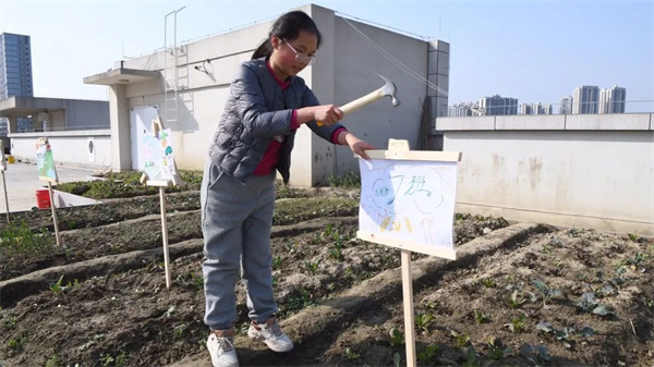1月15日,四川天府新区香山中学的同学们在星光农场开展农场班牌劳动实践活动,亲手设计制作各班专属班牌。从绘图设计、准备材料到动手装配、实地安装,同学们团结协作,让写有各类创意班名的班牌在农场中“安家”。