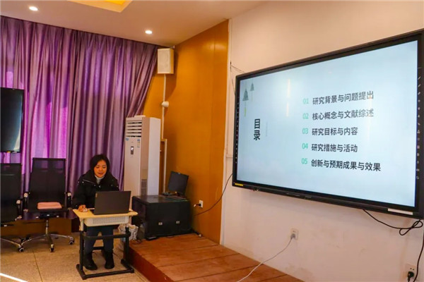 随后,东部新区教育发展研究中心相关负责人宣读课题立项文件,正式确立了课题的区级资质,为后续研究的规范化与有序化推进奠定了基础。 在本次区级课题开题中,3位课题负责人代表课题组依次作开题陈述,围绕课题研究背景、核心概念界定、研究目标与内容、研究方法与步骤、预期成果等关键内容,进行全面细致的阐述。