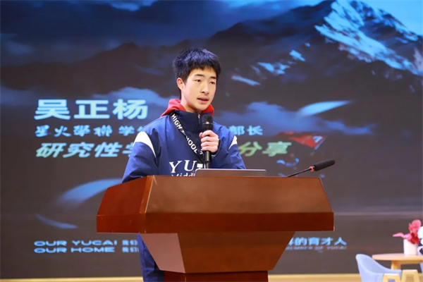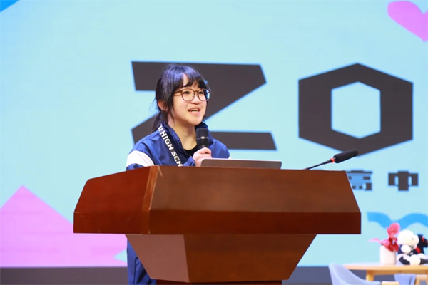 高中部的杨馨睿、唐君宇同学作为代表分享成长心得, 吴正杨同学分享学术研究经验,让榜样力量直抵人心;学生会主席杨曼菲细数学联工作与校园活动的丰硕成果,勾勒出育才学子在实践中成长、在自治中绽放的青春图景。