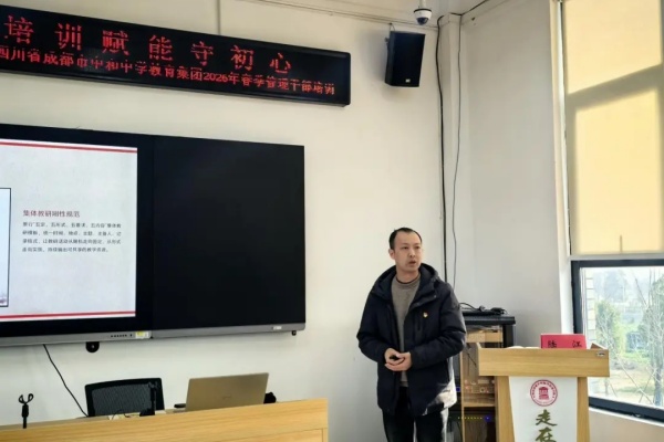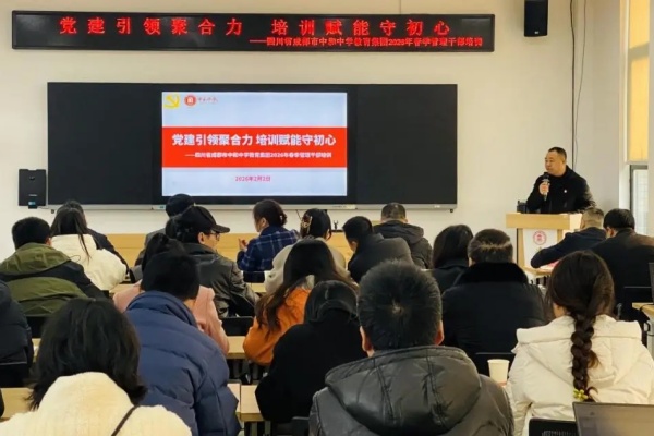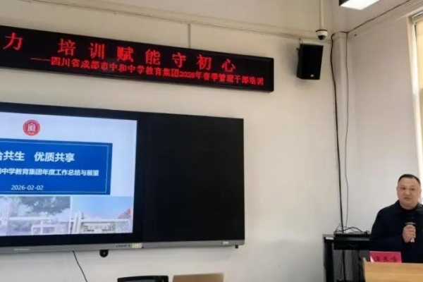 2月2日,成都市中和中学教育集团“党建引领聚合力,培训赋能守初心”2026年春季干部培训在四川战旗乡村振新培训学院举行。集团全体管理干部齐聚一堂,以学铸魂、以研促干,凝聚起推动集团教育事业高质量发展的强大合力。培训由集团龙头校行政办主任李海涛主持。
