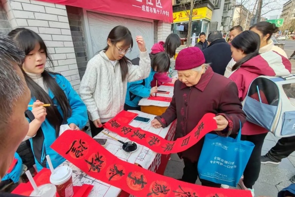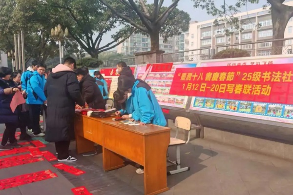 红彤彤的春联映着同学们的笑颜,带着墨香的祝福送到全校师生手中,让冬日的校园满是温馨的节日氛围,也让同学们在书写与赠送中,学会表达感恩、传递温暖。