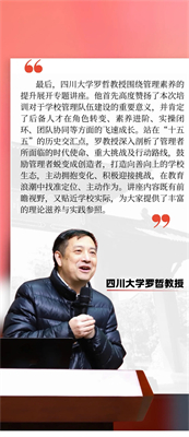红梅初绽蕊,立春启新篇。2月2日上午,七中育才教育集团在水井坊校区卓尔厅举行后备人才培训总结会,凝练实践经验、优化发展路径。集团领导、各校区及分校分管领导、中层领导及全体后备人才齐聚一堂,特邀四川大学罗哲教授到场指导,共同回首一年来的成长足迹,擘画未来奋进蓝图。