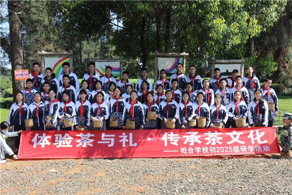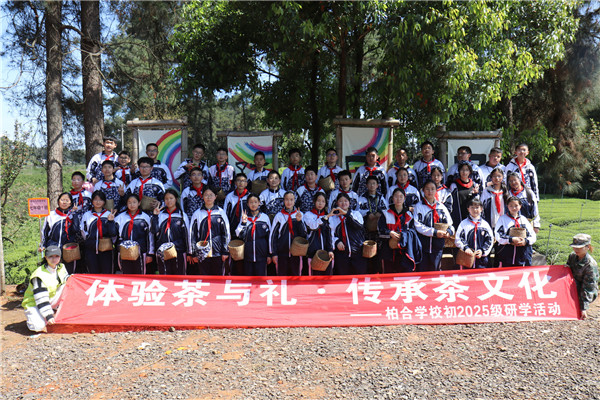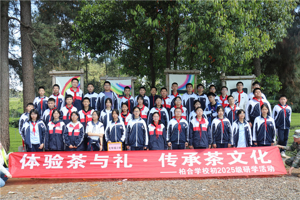 2026年3月31日,春光明媚,茶香漫野。成都市龙泉驿区柏合学校全体七年级师生走进成都市成佳茶乡三鑫茗苑,开展“体验茶与礼,传承茶文化”主题研学活动。在千亩茶园之间,同学们以双手采摘春天,以心灵感悟传统,完成了一场浸润着茶香的传统文化之旅。