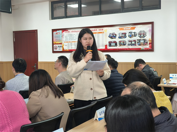 青年教师罗显涛、付幸月聚焦教学实践提升与问题反思进行交流。罗显涛提出要在实践中归纳提炼、在积累中沉淀经验,着力补齐教学管理短板,夯实站稳讲台的基本功;付幸月分享了成长中的收获,提出要形成专属教学风格,坚持记录教学手记,在复盘总结中持续进步。