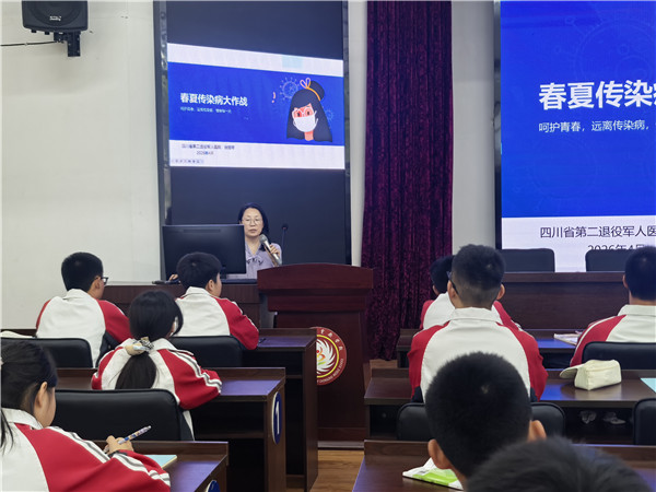 为切实提升师生传染病防控意识,筑牢校园健康屏障,2026年4月16日,崇庆中学实验学校特邀健康副校长、四川省第二退役军人医院徐丽琴医生,带来《春夏传染病大作战》专题知识讲座。
