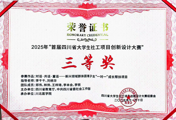 近日,首届四川省大学生社工项目创新设计大赛决赛在南充圆满落幕。本次大赛由四川省教育厅、四川省委社会工作部联合主办,川北医学院承办,是省委社会工作部成立后举办的首届省级社工赛事。大赛以“社创赋能·共治共享”为主题,聚焦社会工作创新实践,为全省的社会工作专业学子搭建了展示专业素养与创新能力的大舞台。四川工商学院参赛队伍凭借扎实的实践基础与暖心的服务设计,在激烈角逐中脱颖而出。