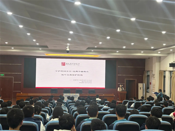 为提升学生法律素养与自我保护能力,营造平安和谐的校园环境,2025年10月27日,成都市工程职业技术学校联合青白江区妇联、青白江区芳草芯社区服务中心,共同举办“巾帼维权普法·护航健康成长”法律知识讲座。活动特邀律师郭又源,围绕《守护校园安全·远离诈骗毒品》展开讲解,200余名学生代表现场参与。 讲座伊始,学生中心副主任陈颖娇为本次活动致辞,对在场嘉宾和同学们表示热烈欢迎,强调法律知识对于学生成长的重要性。随后,郭又源聚焦校园欺凌防治、反诈防骗、禁毒三大板块,结合《中华人民共和国未成年人保护法》相关条款与真实案例,解析校园欺凌的表现形式与法律后果,引导学生“遭遇霸凌及时报告、看到霸凌主动制止”;针对“冒充老师收费”“游戏装备诈骗”等,抽丝剥茧解析骗局,增强学生识别与防范能力;禁毒教育则通过揭示毒品危害及涉毒法律后果,帮助学生树立自觉远离毒品的意识。
