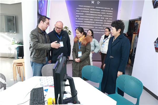 培训首站锚定济南,学员们先后走进济南信息工程学校、济南电子机械工程学校两所国家级优质职教院校,开启沉浸式深度学习。在济南信息工程学校,学员们重点探访了物联网、无人机等特色产教融合实训基地,实地观摩“理实一体化”教学现场——学生在模拟企业真实场景的实训室内,理论学习与技能实操同步推进,实现知识向能力的快速转化。该校“以信息技术类专业为主体、财经商贸类专业为两翼”的办学架构,以及“三能一促,岗位对接”的人才培养体系,让学员们深受启发。该校校长闫少华向与会同志介绍了学校基本办学情况及办学理念,大家围绕德育管理、班主任队伍建设、专业与产业对接、技能大赛与产教融合等核心议题,展开深度对话,详细探寻班主任考核管理、“双师型”教师培养的实施路径,尤其对“企业导师进校园、专业教师进企业”的双向交流机制展开热烈研讨。